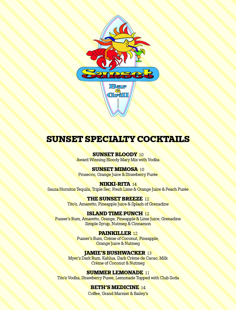 Welcome to Sunset Bar & Grill, a hidden gem nestled in the heart of Old Orchard Beach, Maine. Located at 4 Fernald St, this vibrant eatery captures the essence of coastal dining with its relaxed atmosphere and stunning views.